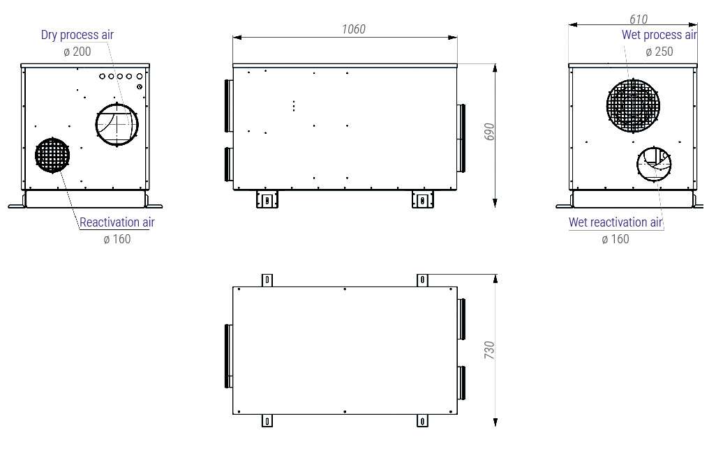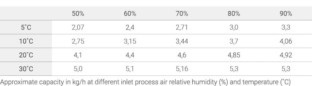 The MDC 800 offers 800 m³/h airflow and 5.0 kg/h moisture removal, designed for mid‑sized dry rooms, cold storage, and process‑drying in challenging low‑temp environments .